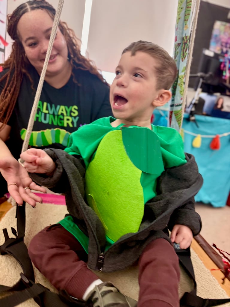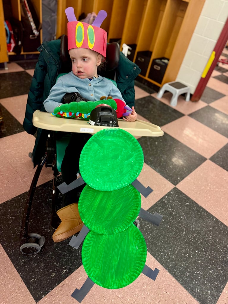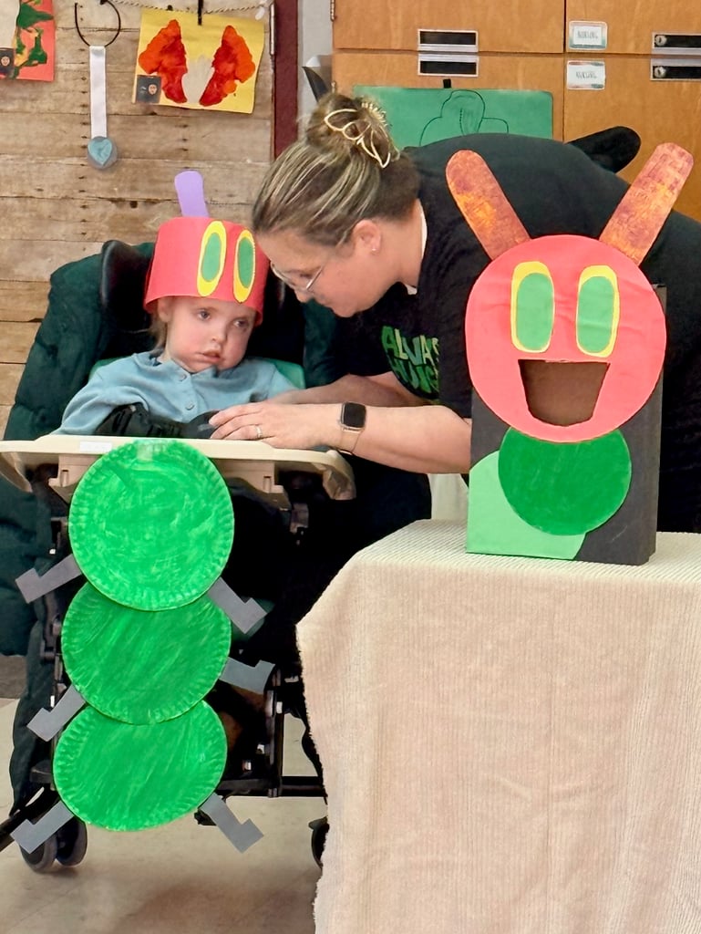 Staff and students in Ms. Allie’s Preschool Developmental Learning Program proudly brought Eric Carle’s The Very Hungry Caterpillar to life through a joyful, interactive performance that showcased colorful costume changes, thoughtfully designed props and backdrops, and rich use of AAC, highlighting creativity, communication, and teamwork every step of the way.